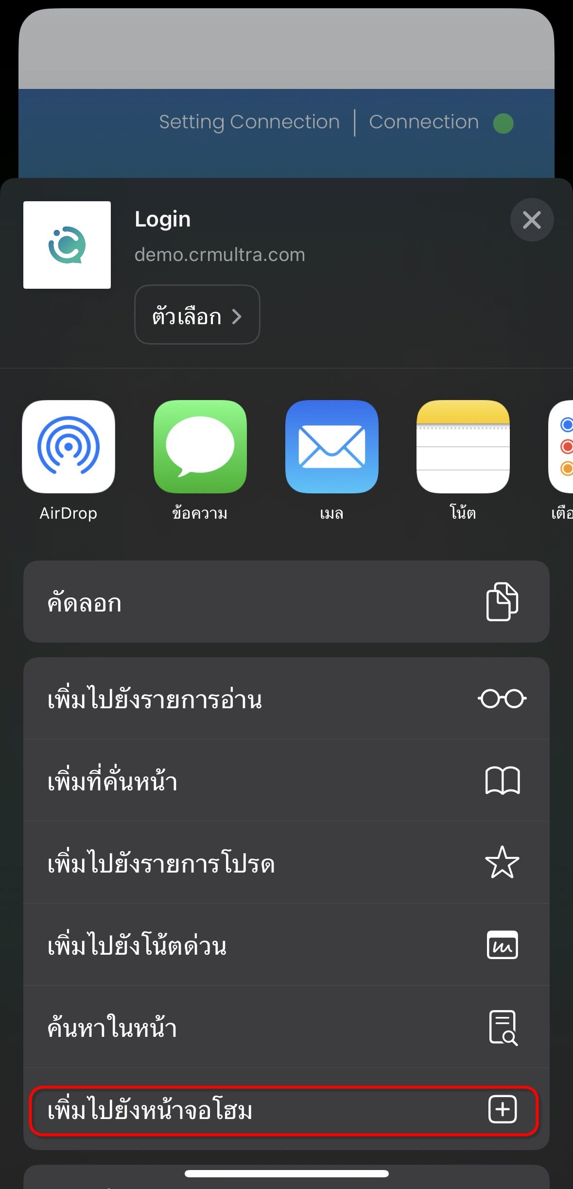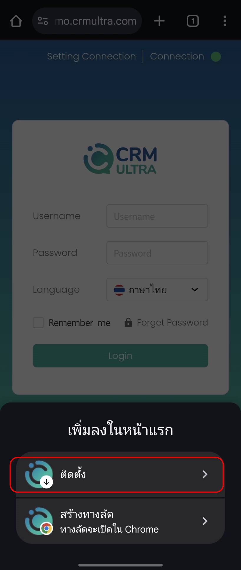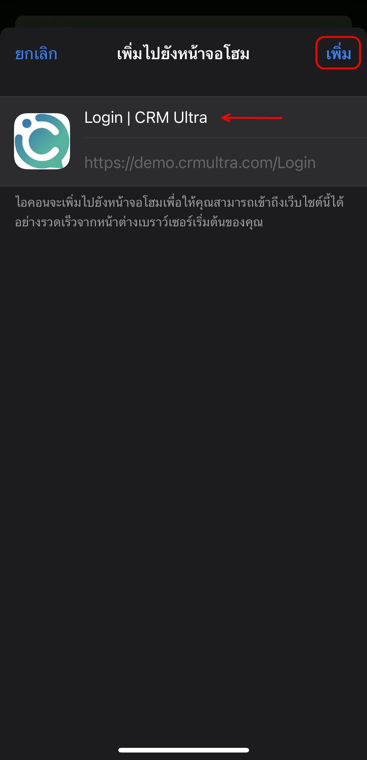 ขั้นตอนการเพิ่มไอคอน CRM Ultra บนหน้าจอมือถือของอุปกรณ์ iOS และ Android